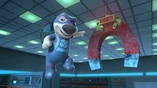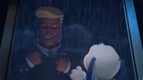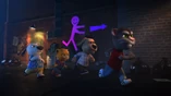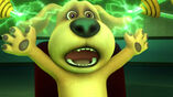 The other friends find him and try to stop him, only to find a bunker full of thievery plans and stolen items. Roy was exposed, and the crowd begins to step towards him, but then he gets away, commands Ben's bot to prevent them from escaping, then presses the self-destruct button on his house, before flying away. The bunker begins to crumble. Ben finds their stolen taxi, and the friends enter and get as far away as they can before the house explodes, leaving them flying.