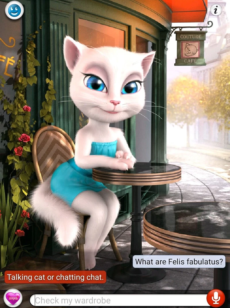 - ↑ In Talking Angela and Tom Loves Angela, when the question "What species is Tom?" is asked, Angela will refer to him as a Talking Cat or Chatting Chat, other names for the Felis fabulatus.